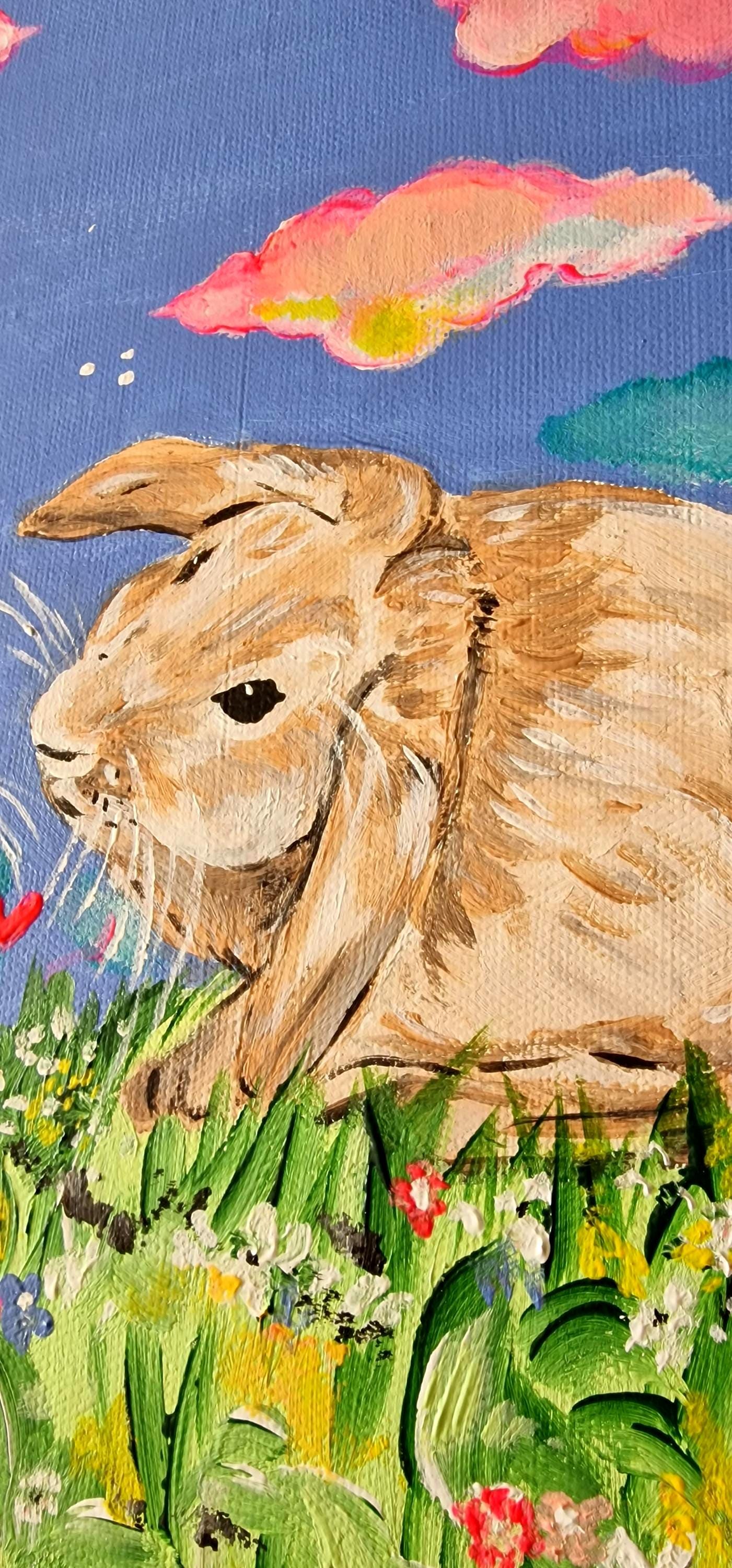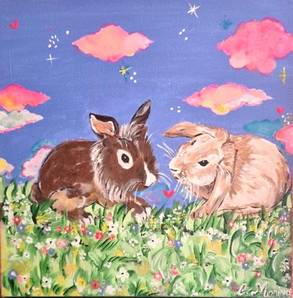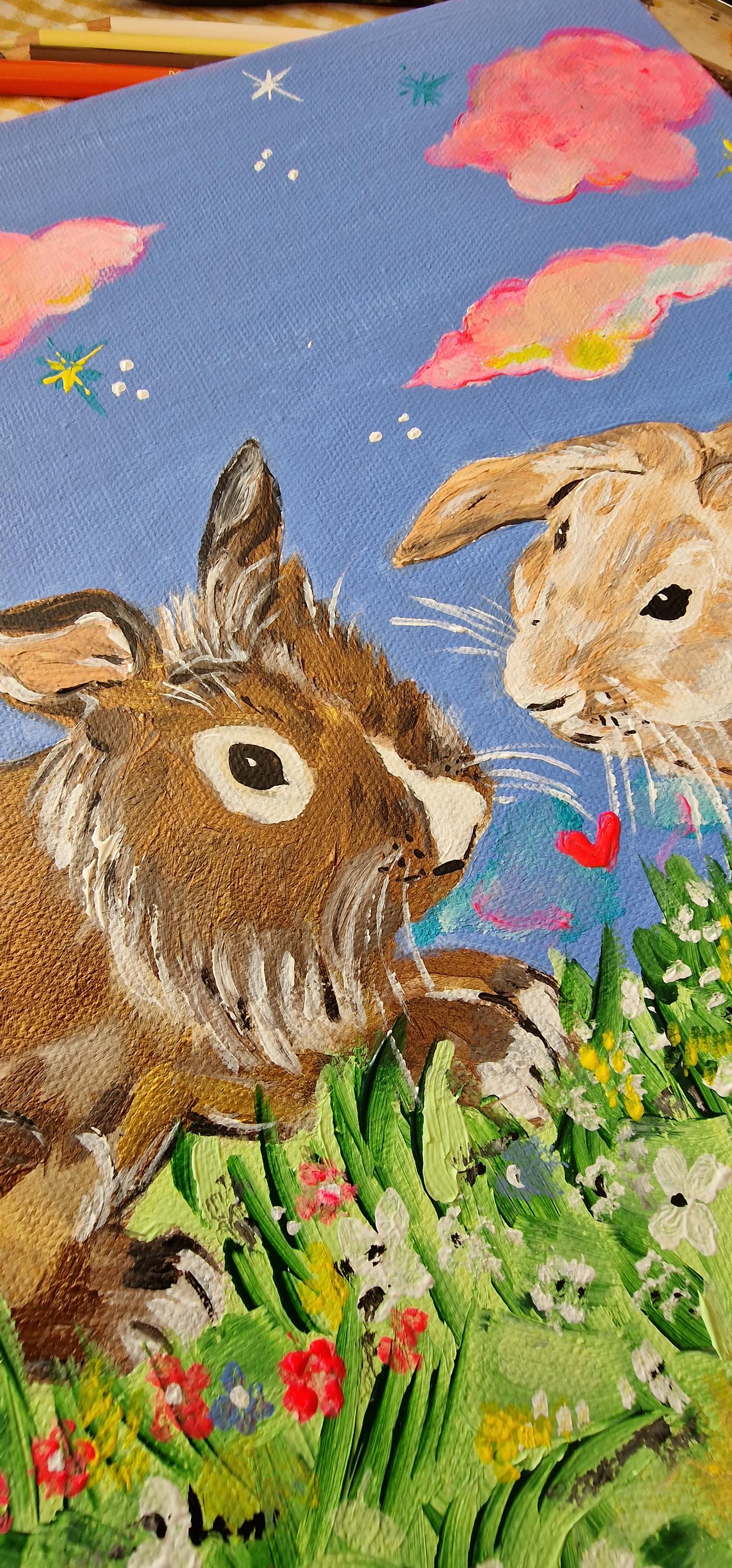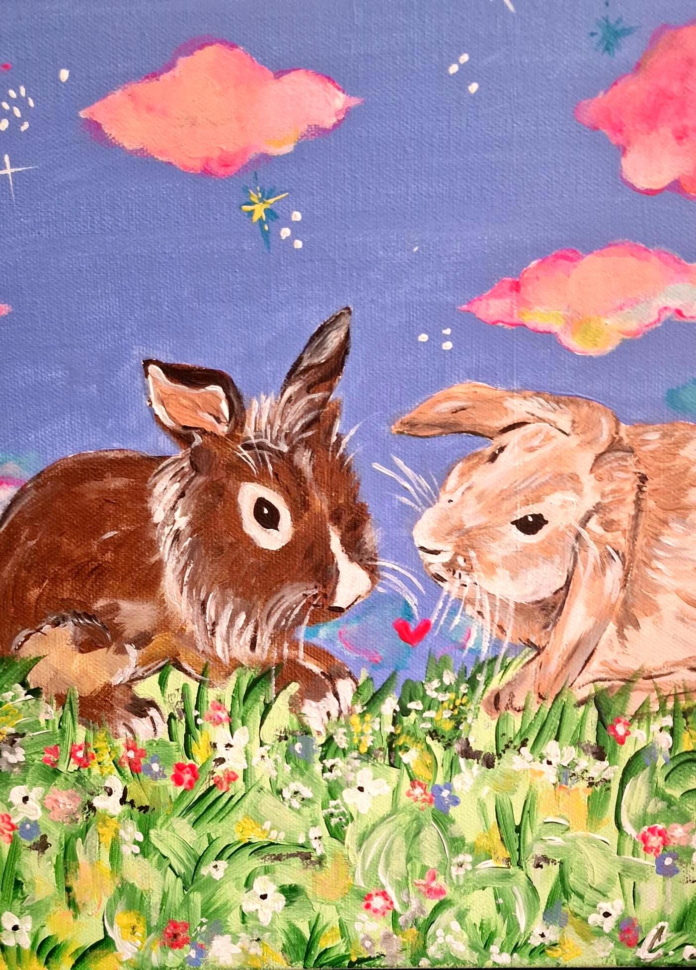 Complicité de Lapins sous un Ciel de Rêve, tableau tout doux